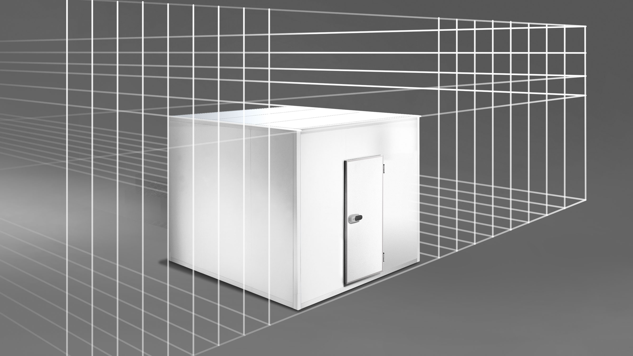 Nella versione senza pavimento, la cella è fornita di profilo a “U” per l’inserimento dei pannelli di parete e fissaggio della cella al pavimento;